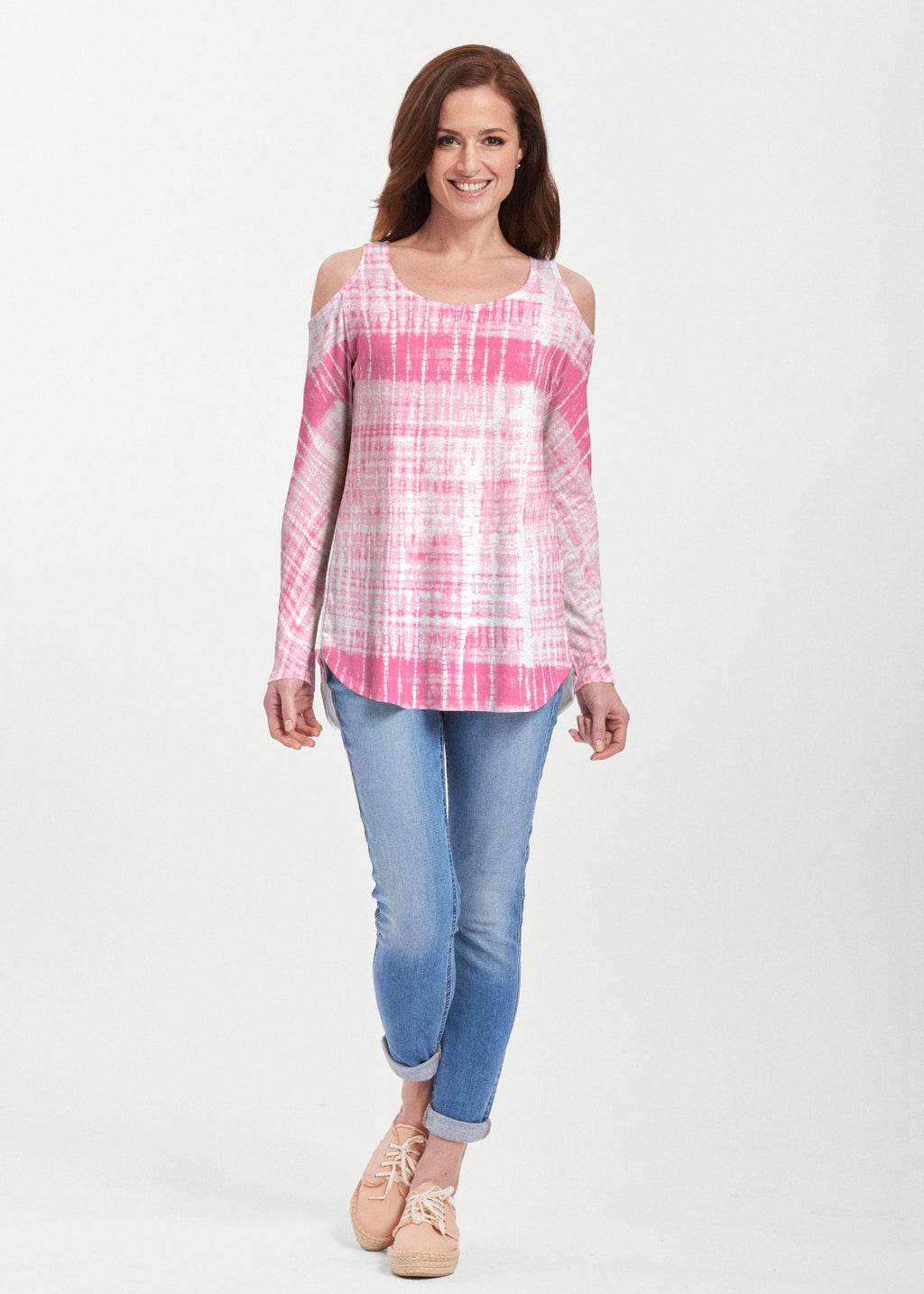 Put on comfort and style with our soft Butterknit Cold Shoulder Tunic. Subtle cut-outs, scoop neck, and long sleeves balance the relaxed shirttail hemline. Approximately 29.5 in. long size M.