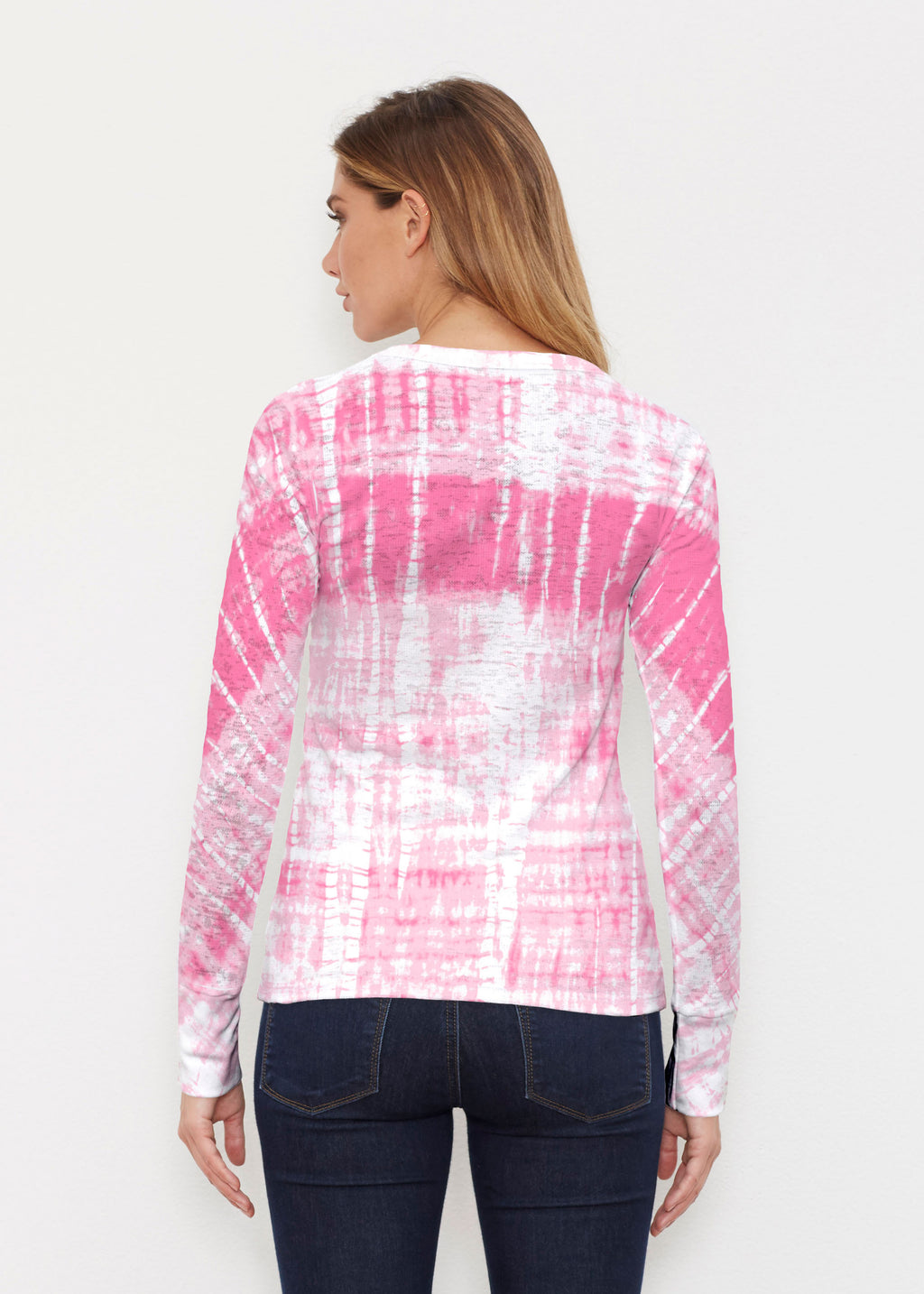 Express your boho side with this easy going abstract print using shades of pink tie dye on faux grasscloth fabric designed by Debra Valencia.
