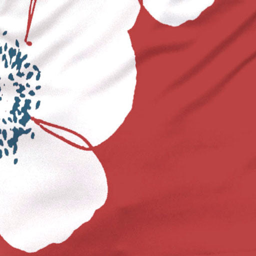This print features small poppies on the front with a large poppy on back in red and white. This classic favorite designed by Susan Werner.
