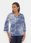 Playful floral and geometric print in navy and white designed by Leah Hoelscher.