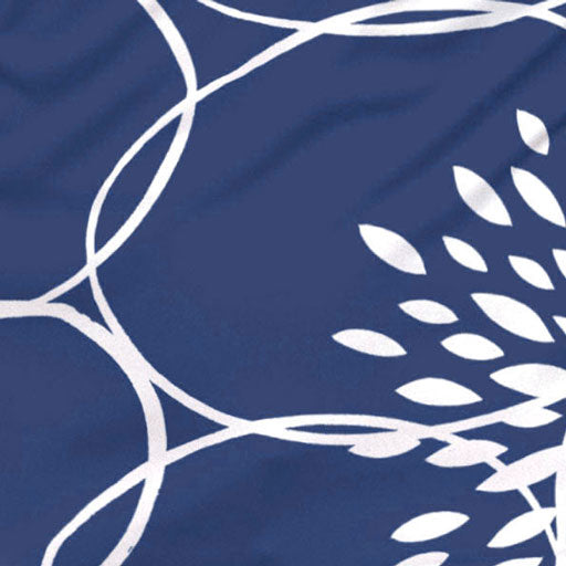 Playful floral and geometric print in navy and white designed by Leah Hoelscher.