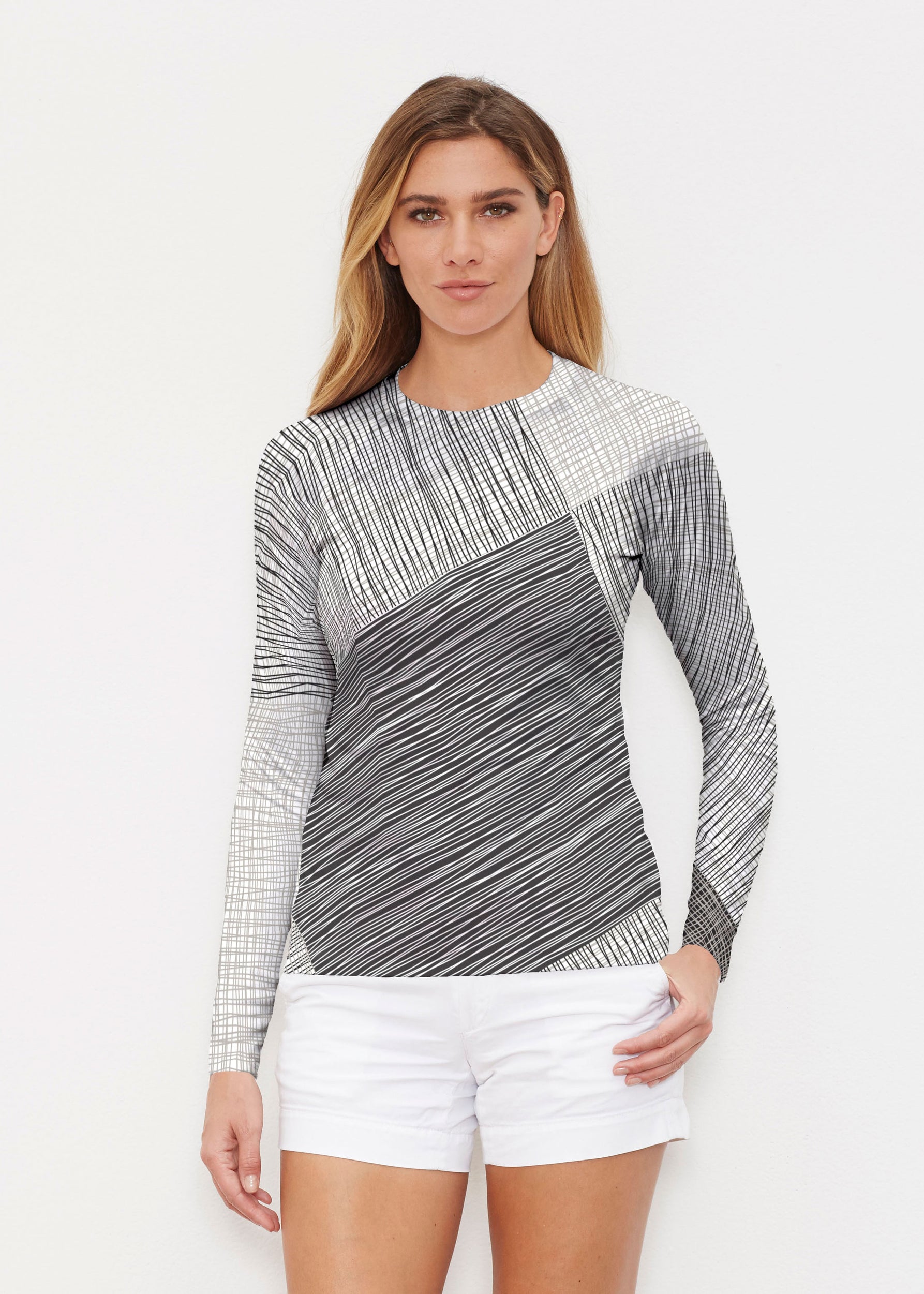Our WHIMSY ROSE™ Safe Sun UPF 50+ long sleeve, crew neck rash guard offers versatile, beach-to-bistro style, supreme comfort, and an activewear fit. Made in a specially designed Safe Sun textile that blocks more harmful rays and provides a smart solution for those who love to swim, surf, kayak, canoe, waterski, boat, or simply relax waterside.