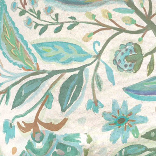 A stunning and playful floral print in green, aqua and blue designed by Jeanetta Gonzales.
