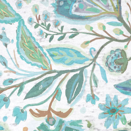A stunning and playful floral print in green, aqua and blue designed by Jeanetta Gonzales.