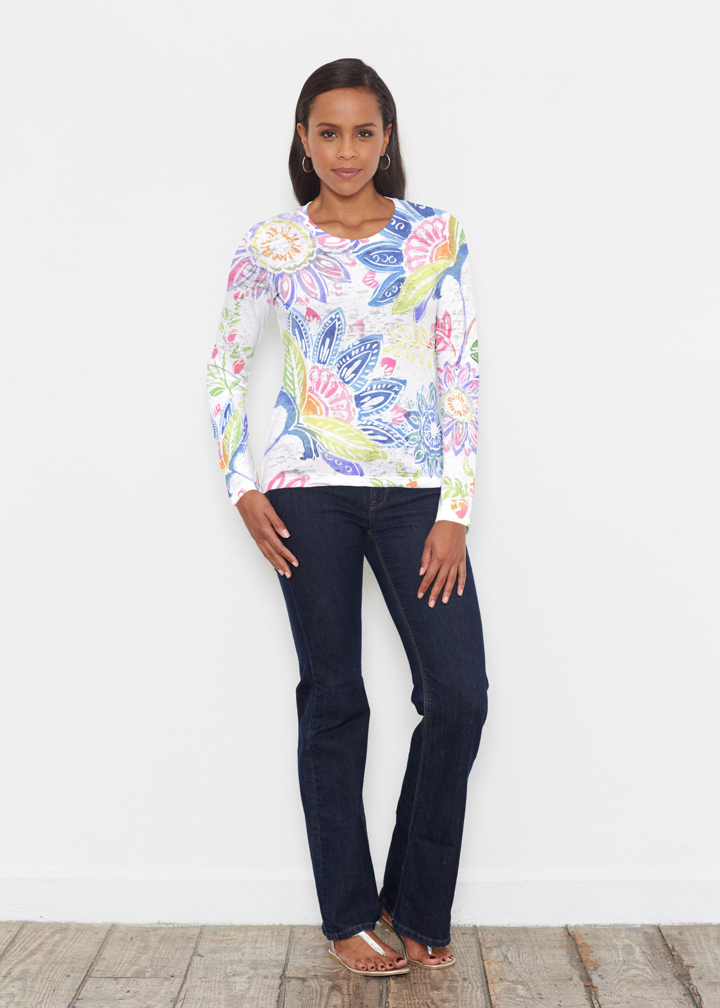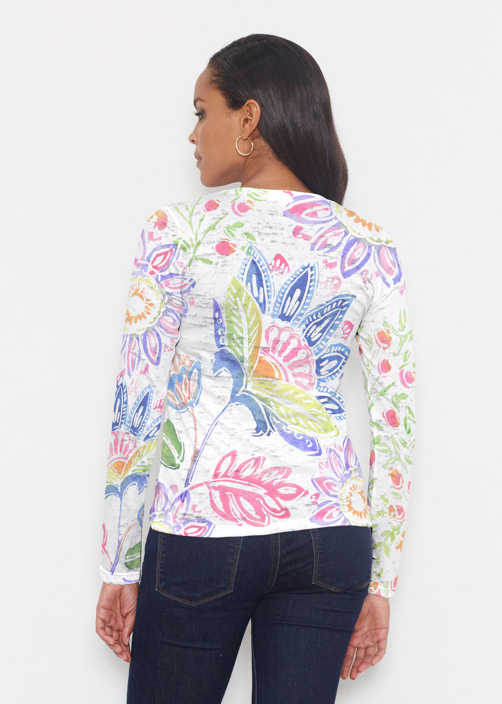 Our popular long sleeve tee is casual and fun in our Signature lightweight burn-out blend. This tee features a relaxed fit, crew neck, and long sleeves.