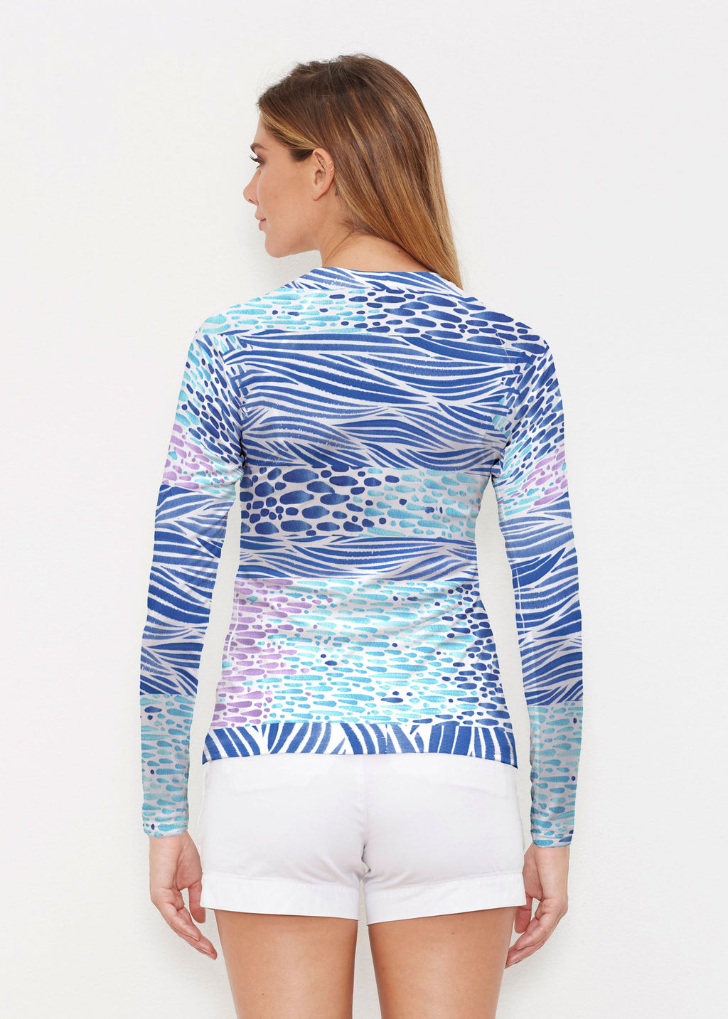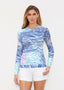 Our WHIMSY ROSE™ Safe Sun UPF 50+ long sleeve, crew neck rash guard offers versatile, beach-to-bistro style, supreme comfort, and an activewear fit. Made in a specially designed Safe Sun textile that blocks more harmful rays and provides a smart solution for those who love to swim, surf, kayak, canoe, waterski, boat, or simply relax waterside.