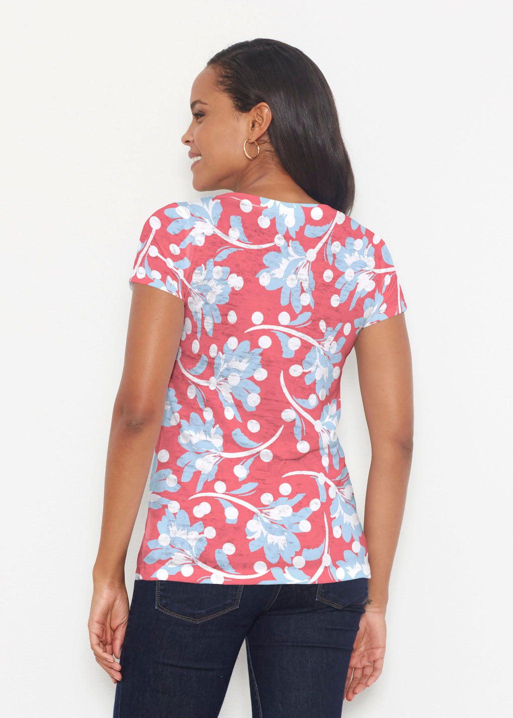 Our scoop neck tee in our casual and supremely soft Signature burnout blend is a best-selling collectible! A relaxed fit falls at the hip.