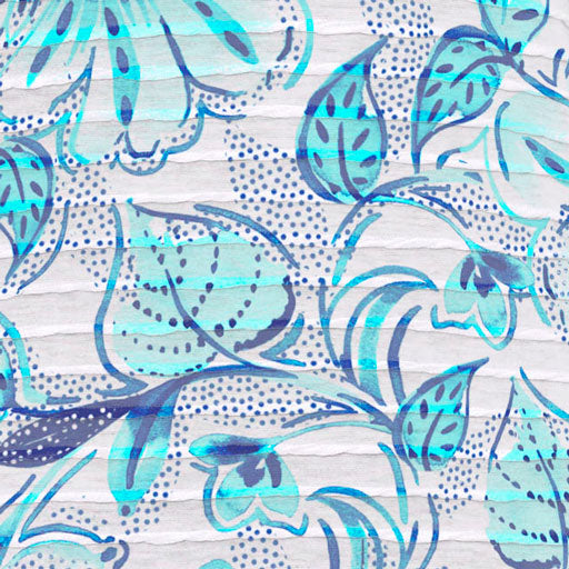 A striking fun floral print with watercolor marks and dots in shades of blue and aqua. Designed by Susan Werner.