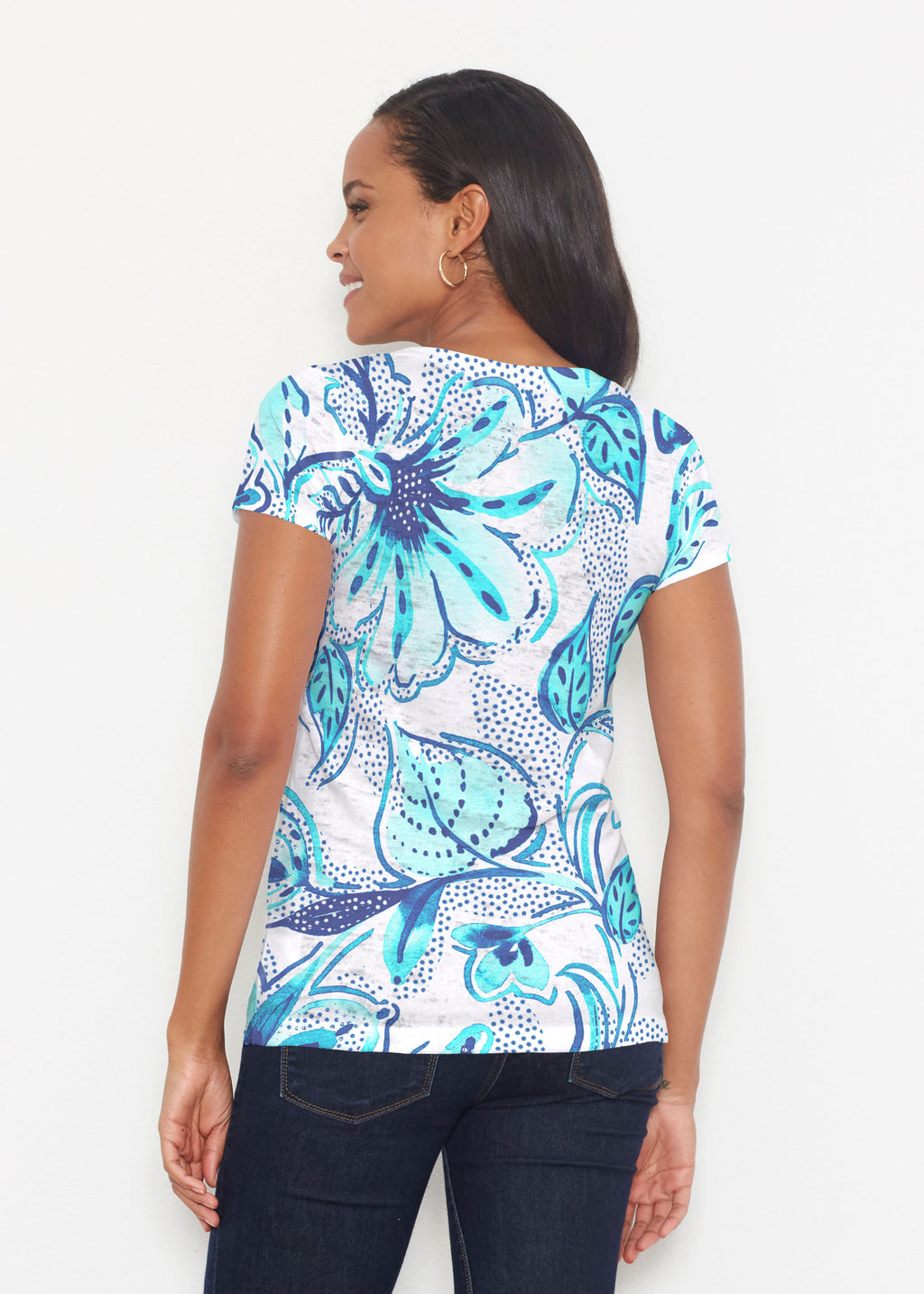 Our scoop neck tee in our casual and supremely soft Signature burnout blend is a best-selling collectible! A relaxed fit falls at the hip.