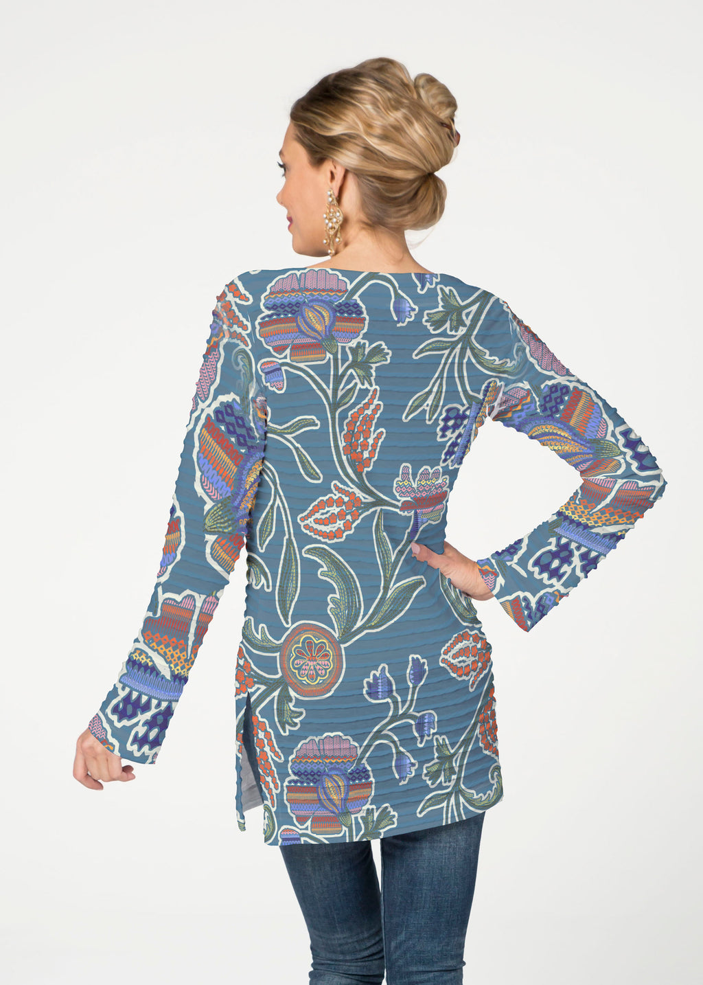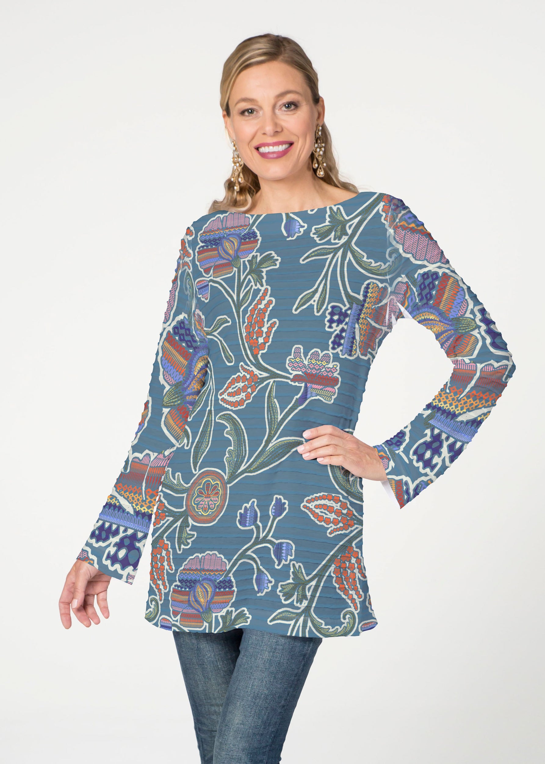The Banded Boatneck Tunic has the soft pleated texture of our Banded fabric, making this a sophisticated, casual year round piece. A forgiving fit, side vents, with a relaxed full length sleeve combine for a flattering look. The hemline flows gently over the hip.