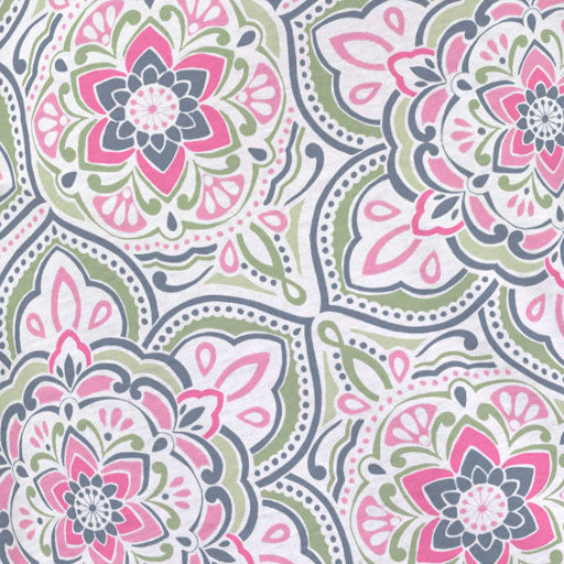 An abstract geo print with two different designs combined into this stunning print with pink, blue and green. Designed by Diane Kappa.