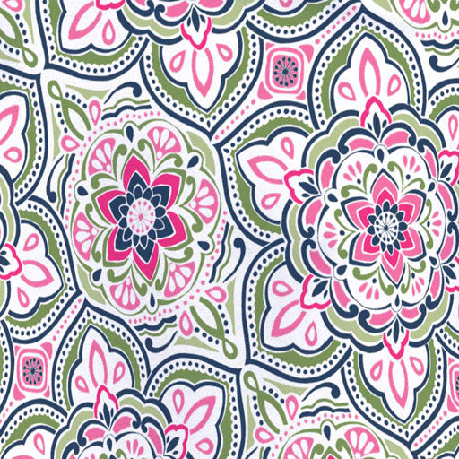 An abstract geo print with two different designs combined into this stunning print with pink, blue and green. Designed by Diane Kappa.