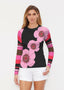 Our WHIMSY ROSE™ Safe Sun UPF 50+ long sleeve, crew neck rash guard offers versatile, beach-to-bistro style, supreme comfort, and an activewear fit. Made in a specially designed Safe Sun textile that blocks more harmful rays and provides a smart solution for those who love to swim, surf, kayak, canoe, waterski, boat, or simply relax waterside.