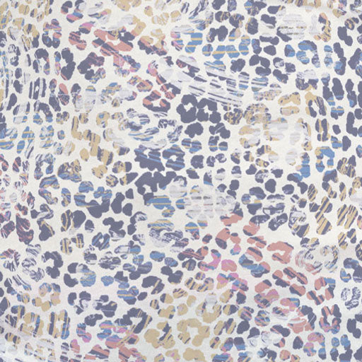 Stunning animal print of indigo spots with gold and blush accents on a beige body and seafoam sleeves.