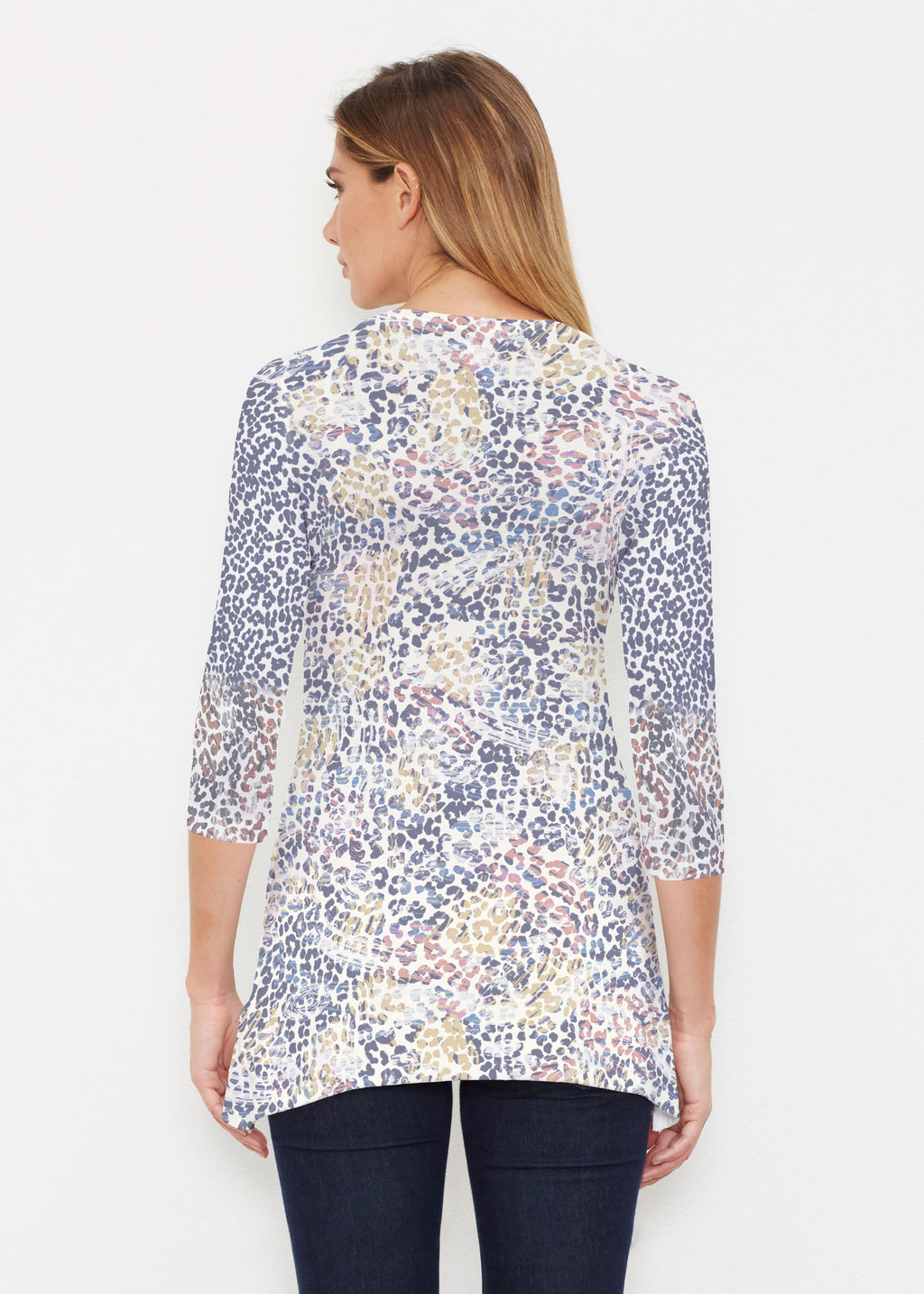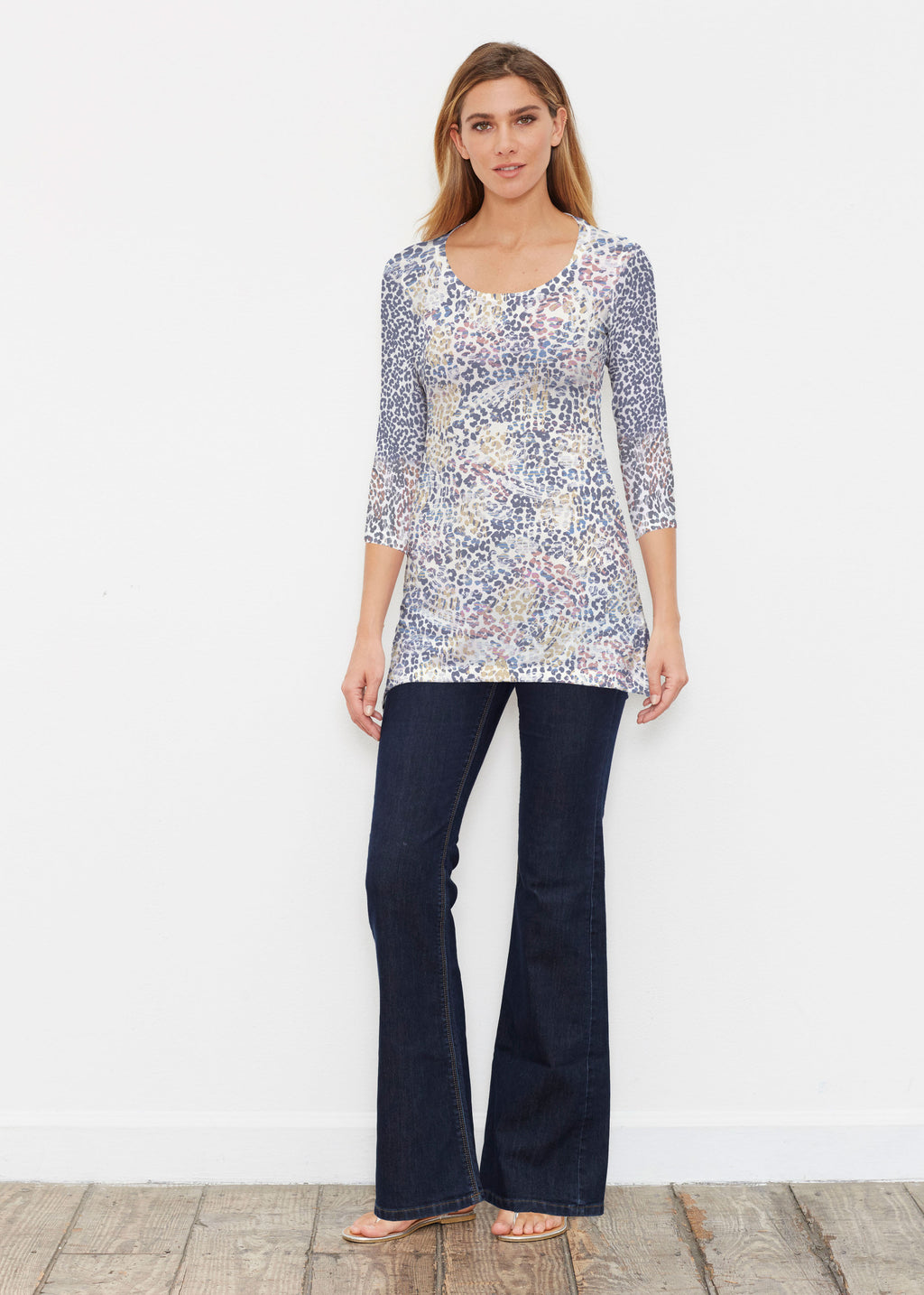 Surprising comfort and style combine in our luxurious Buttersoft blend. A delicate scoop neck, 3/4 sleeve, sweeping curved hemline falls just below the hip.