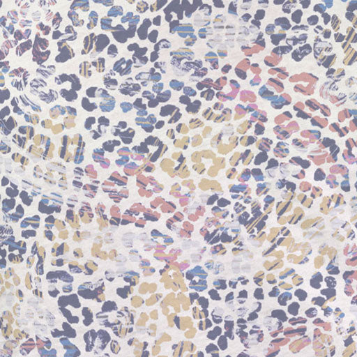 Stunning animal print of indigo spots with gold and blush accents on a beige body and seafoam sleeves.