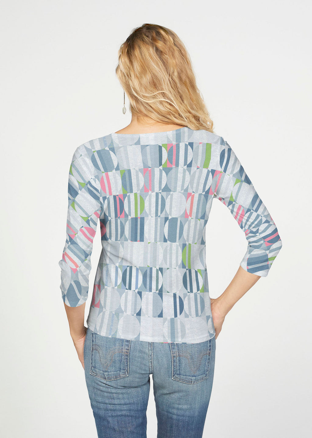 Around We Go (8012) ~ Banded Elbow Sleeve Boat Neck Top