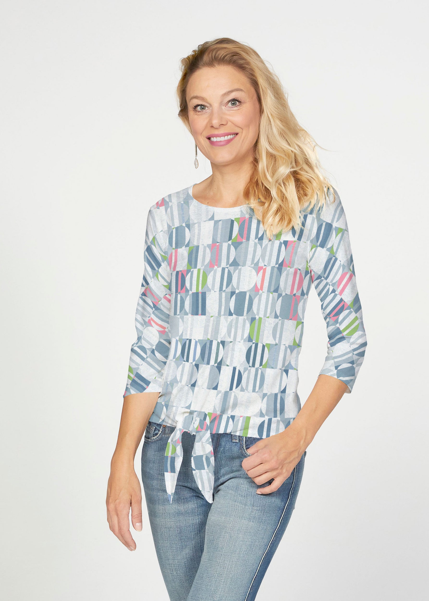 Around We Go (8012) ~ French Terry Tie 3/4 Sleeve Top