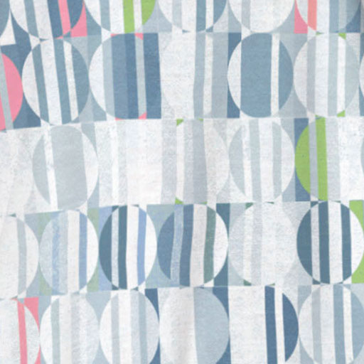 Beautiful striped geometric circles in lime, pinks and greys by Susan Werner