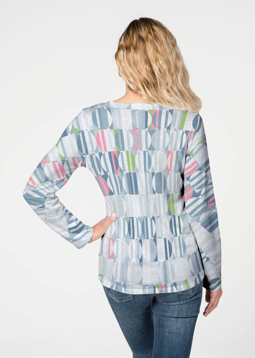 Our French Terry top is comfort and style all in one! Our French Terry top that features long sleeves, a V-neck and a more fitted silhouette that looks stylish in any print.