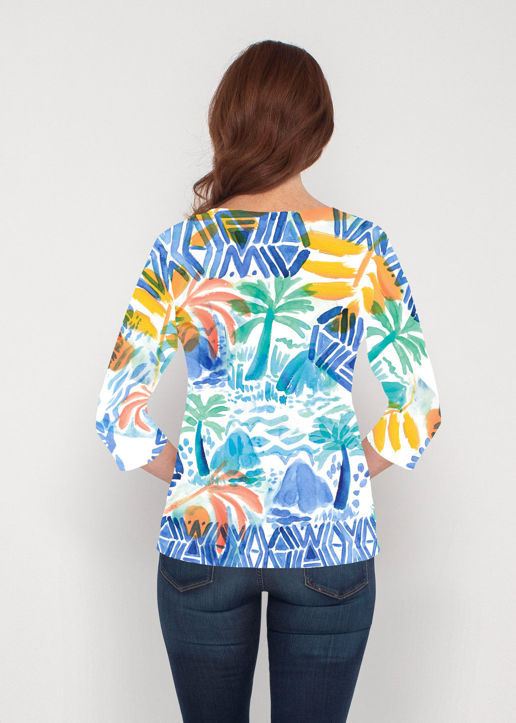 Our casual Signature 3/4 sleeve has a subtle v-neck and is perfectly proportioned and a new best-selling favorite. This relaxed fit is not only flattering but you get to pick that special print for any mood.