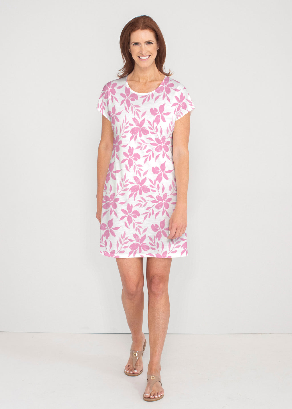• Botanical Pink (8025) ~ French Terry Short Sleeve Crew Dress