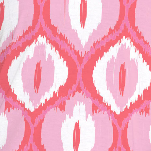A playful ikat print in shades of pink & red with a back panel of our "bud" print in pink and white.