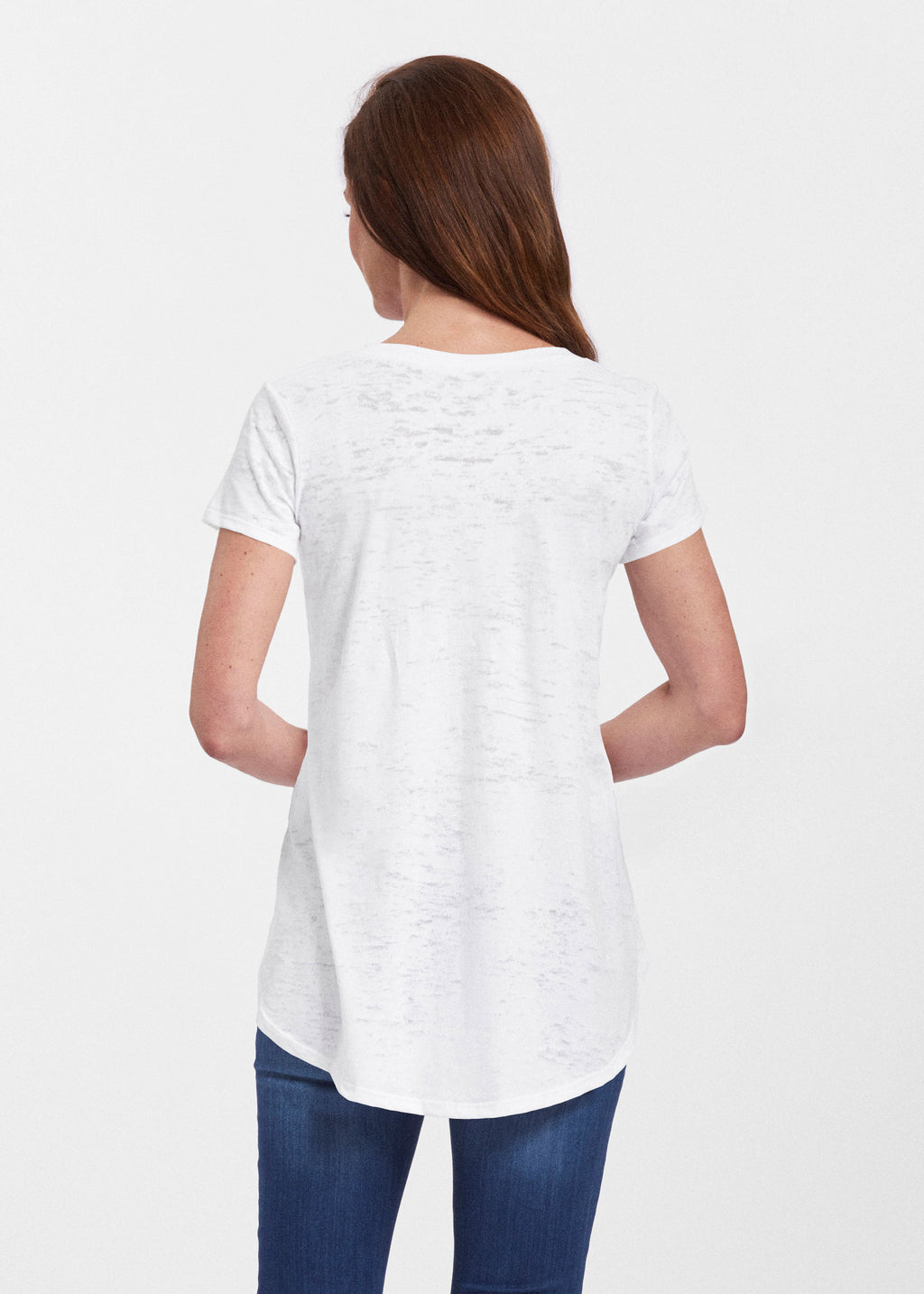 An effortlessly flattering tunic in our soft Signature burnout fabric featuring short sleeves and a scoop neck with a body that flows into a full, swinging shirttail hem.