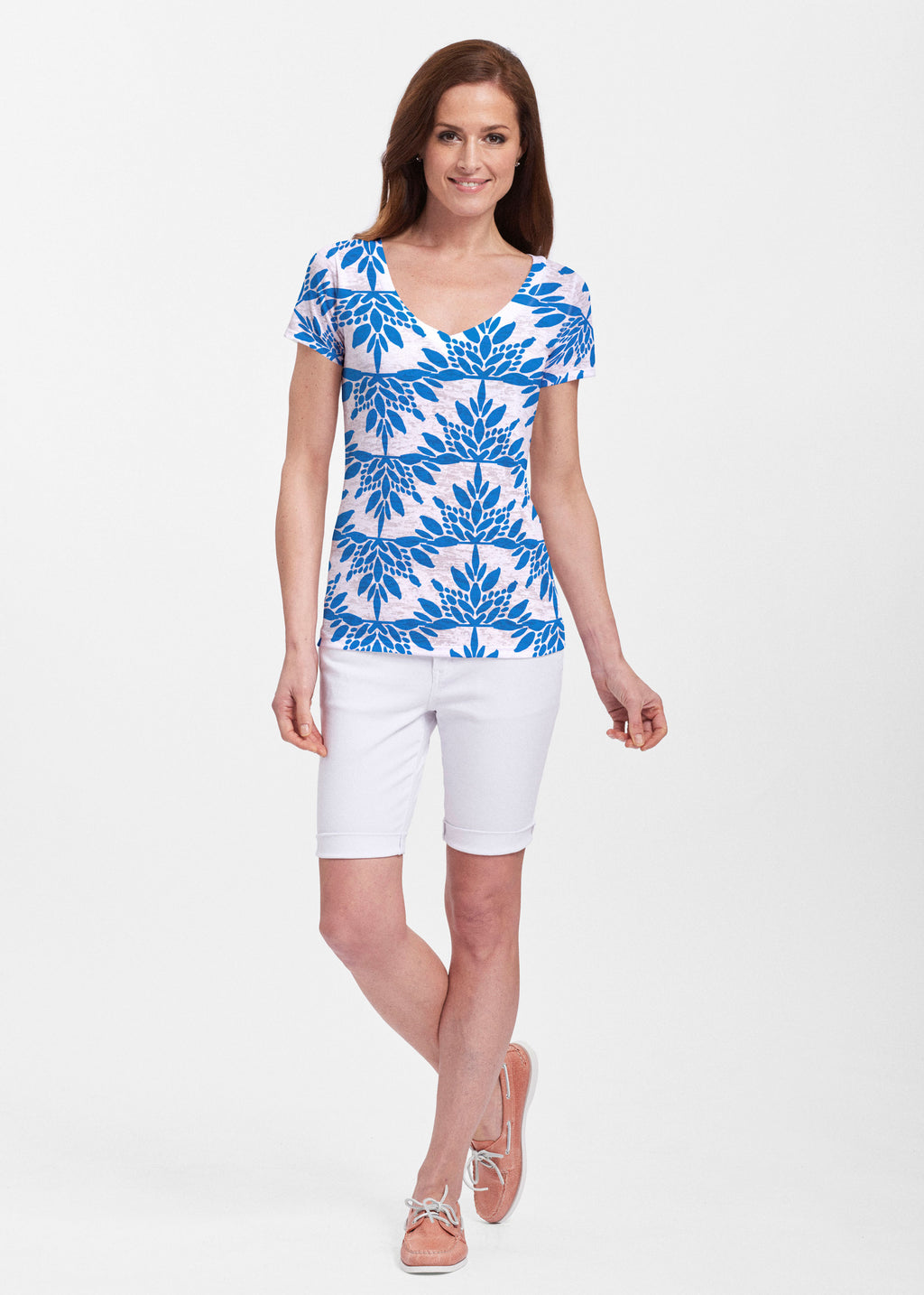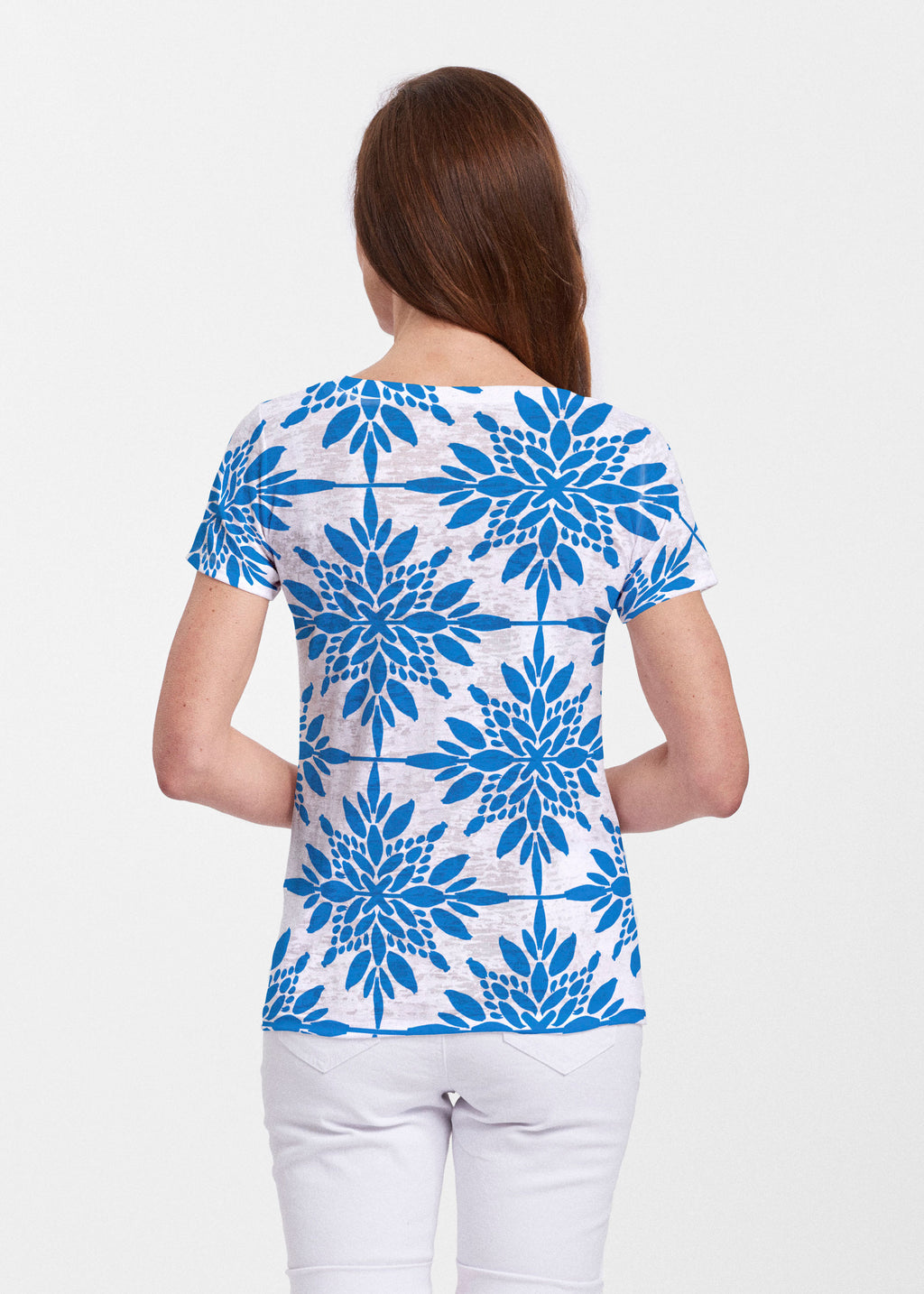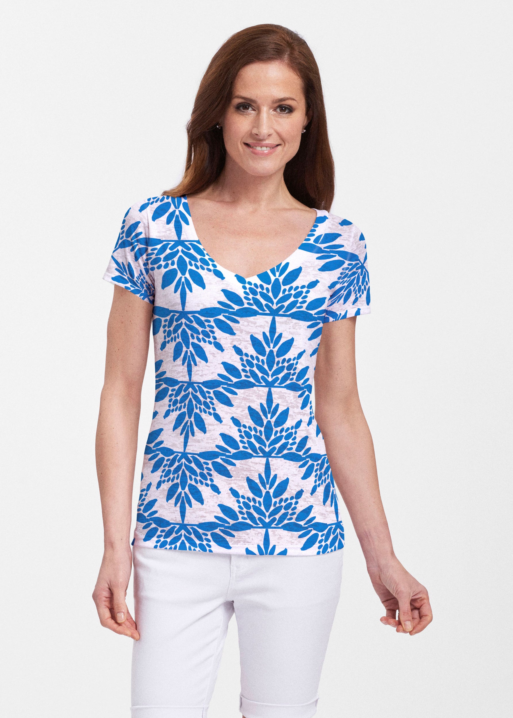 Floral Spritz Turquoise (22093) ~ Sheer Short Sleeve V-Neck Shirt