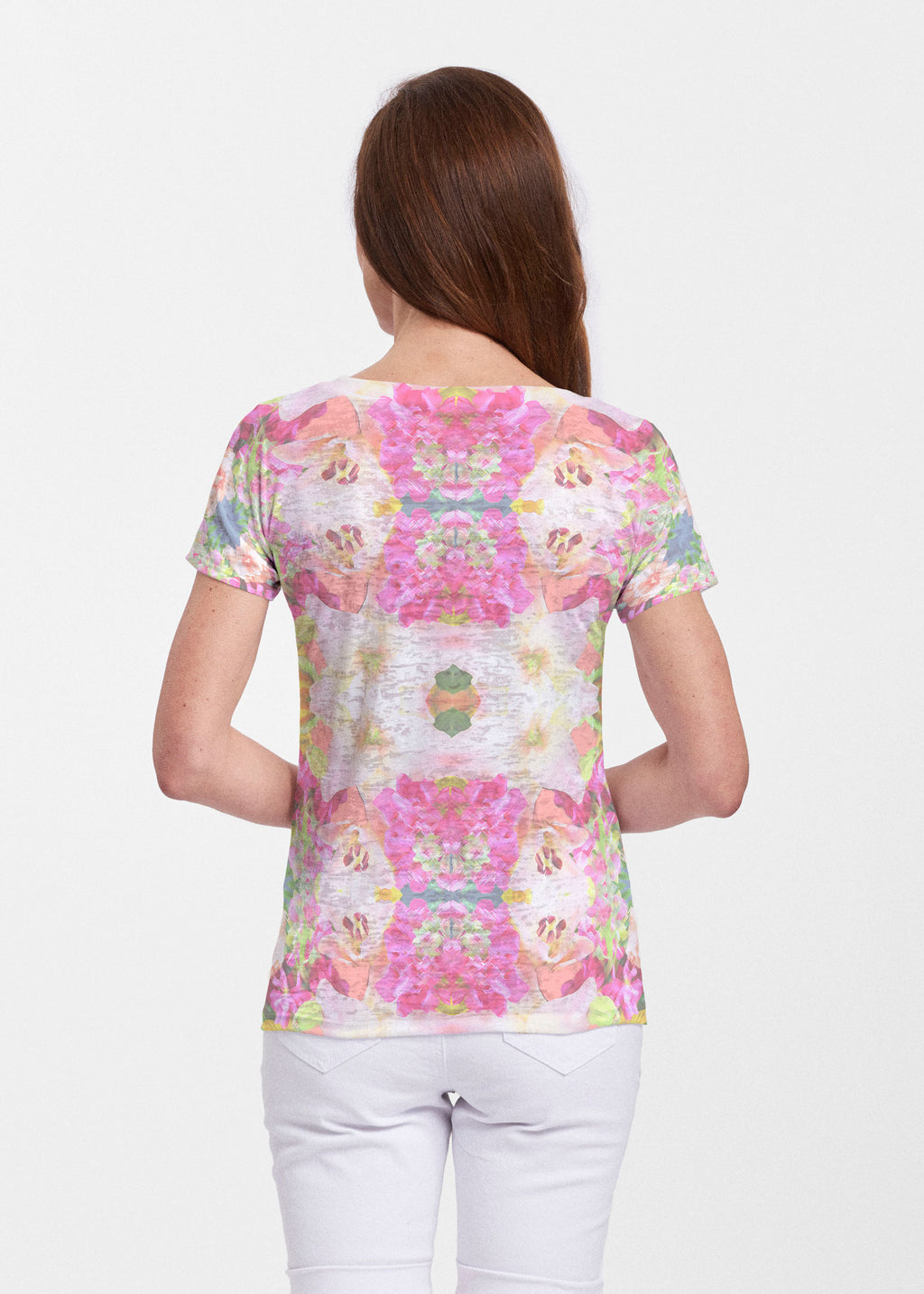 Tiki Pink (15040) ~ Sheer Short Sleeve V-Neck Shirt