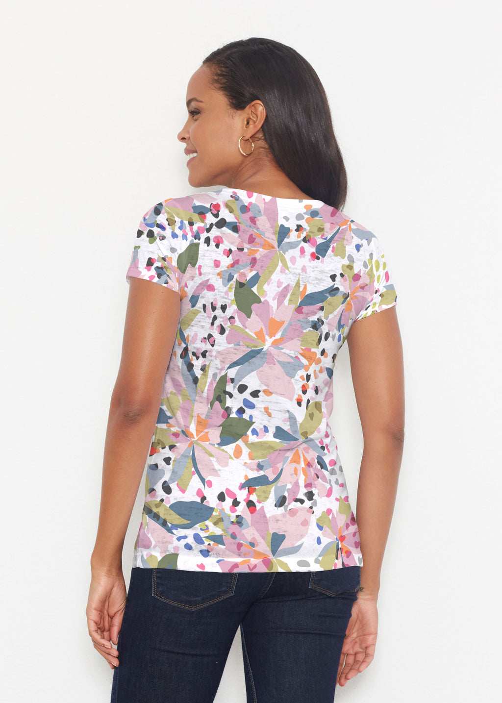 Our scoop neck tee in our casual and supremely soft Signature burnout blend is a best-selling collectible! A relaxed fit falls at the hip.