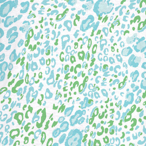 This animal print makes a real statement, in a trendy array of pastel greens. Accented with greek key motif hits the mixed print trend by Susan Werner just right.