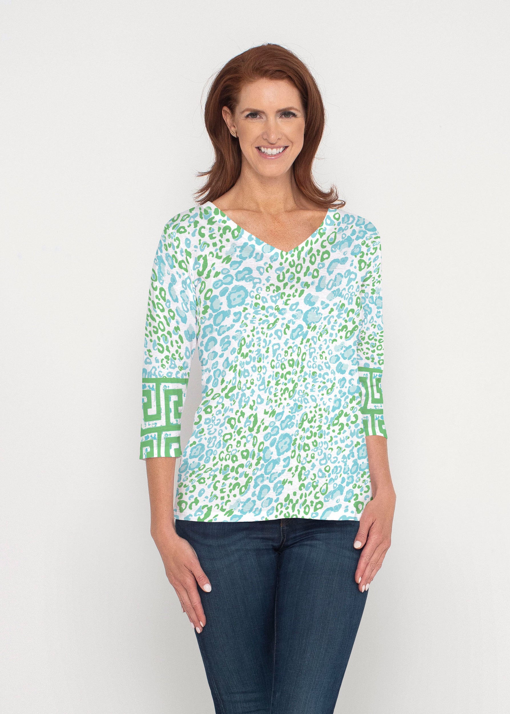 • Greek Cat Green (7913) ~ Signature 3/4 Sleeve V-Neck Top