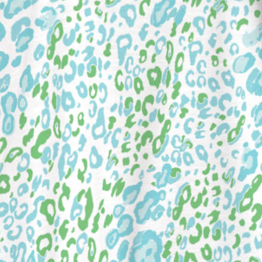This animal print makes a real statement, in a trendy array of pastel greens. Accented with greek key motif hits the mixed print trend by Susan Werner just right.