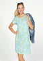 Floral Spritz Turquoise (22093) ~ Classic V-neck Swing Dress