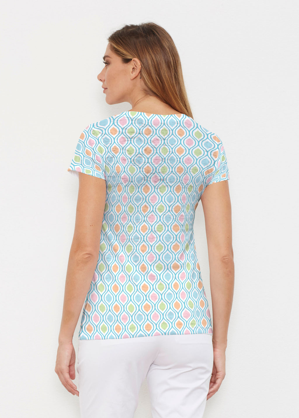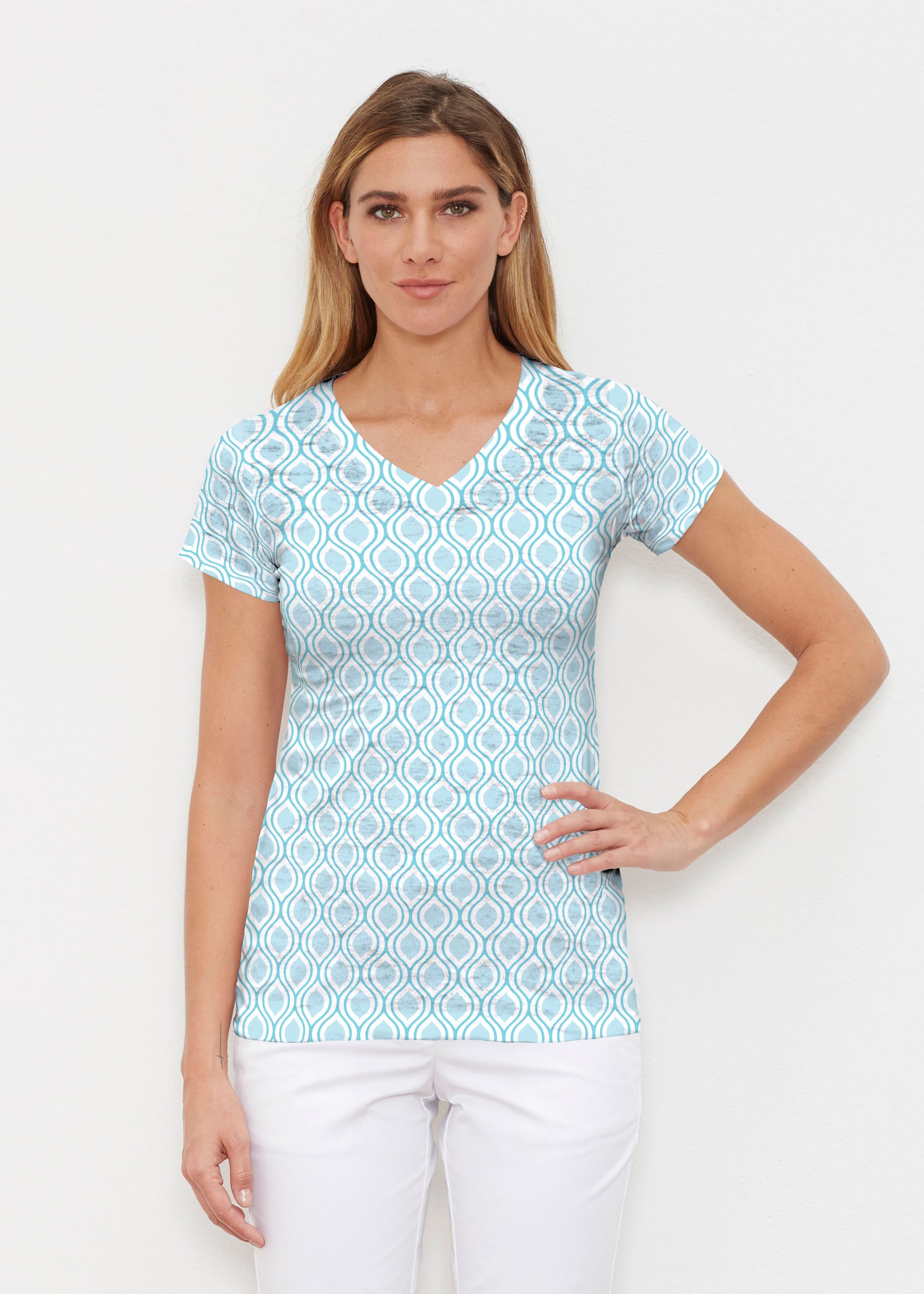 Created in soft, casual burn-out Signature blend, this tee features a subtle v-neck and cap sleeves.