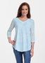 This v-neck tunic in our Signature burnout fabric is forever flattering. 3/4 sleeves and a v-neck flow into a full, swinging shirttail hem.