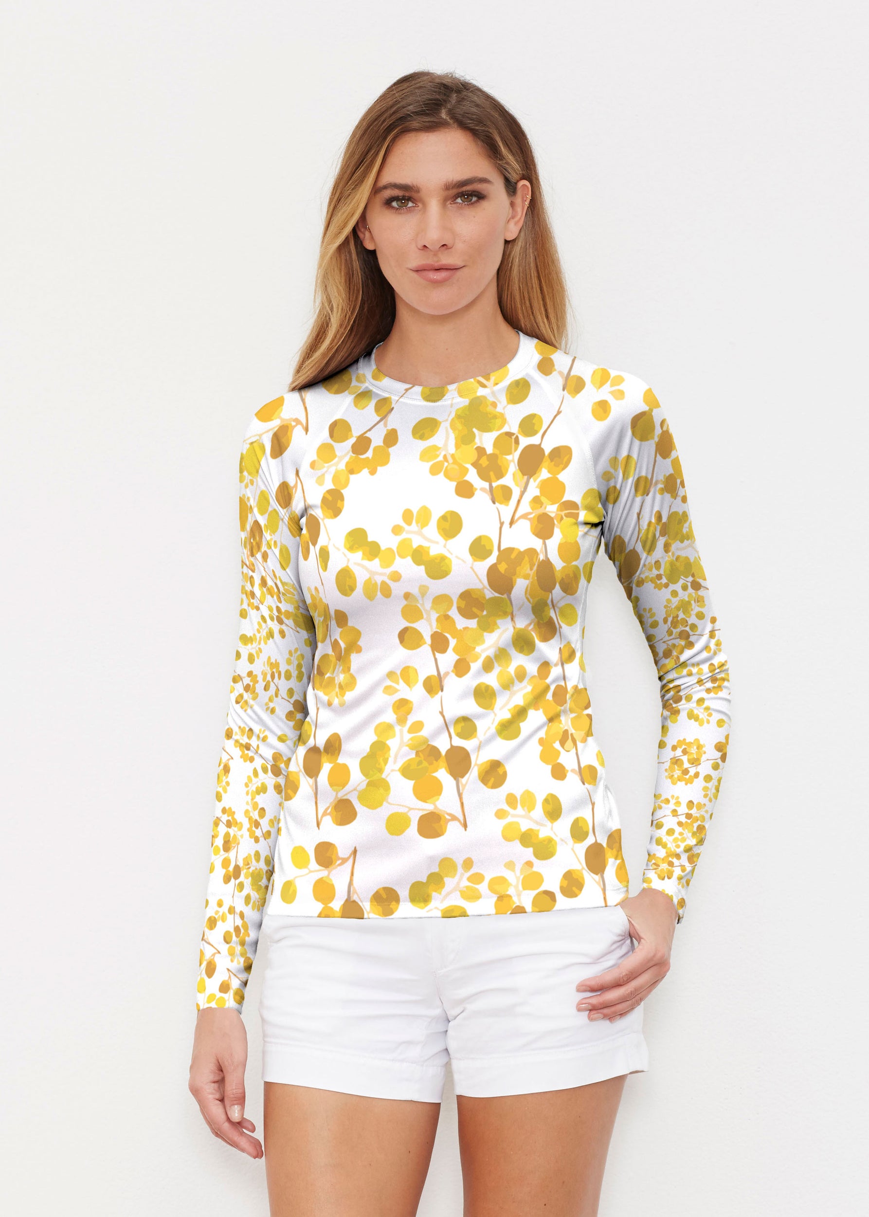Our WHIMSY ROSE™ Safe Sun UPF 50+ long sleeve, crew neck rash guard offers versatile, beach-to-bistro style, supreme comfort, and an activewear fit. Made in a specially designed Safe Sun textile that blocks more harmful rays and provides a smart solution for those who love to swim, surf, kayak, canoe, waterski, boat, or simply relax waterside.