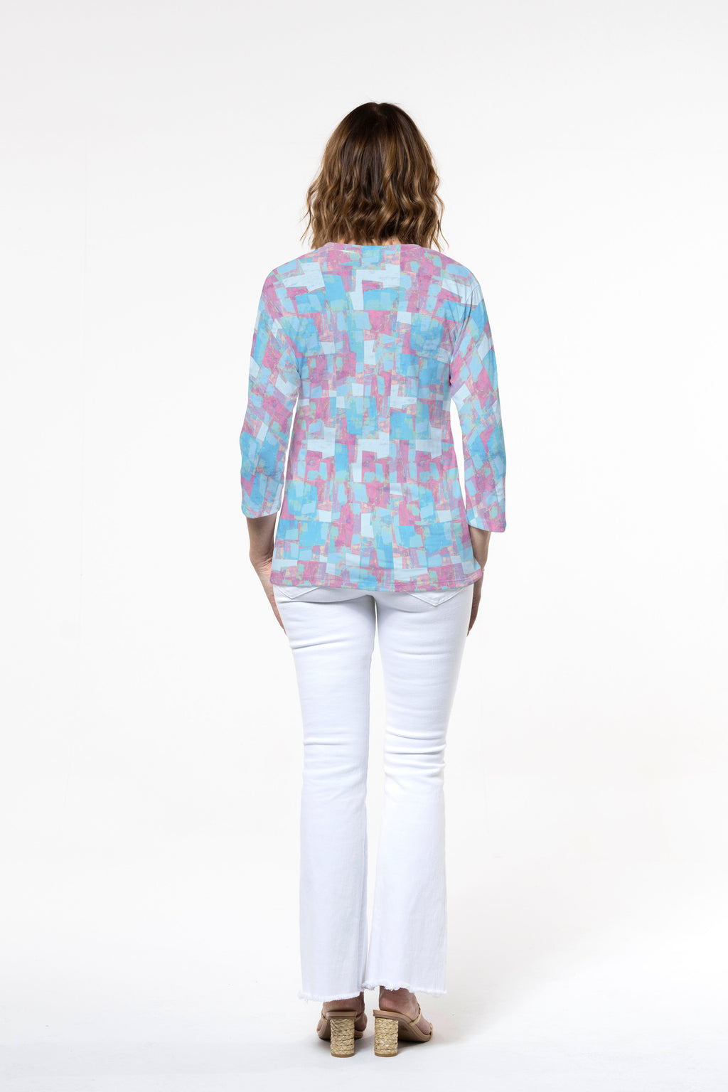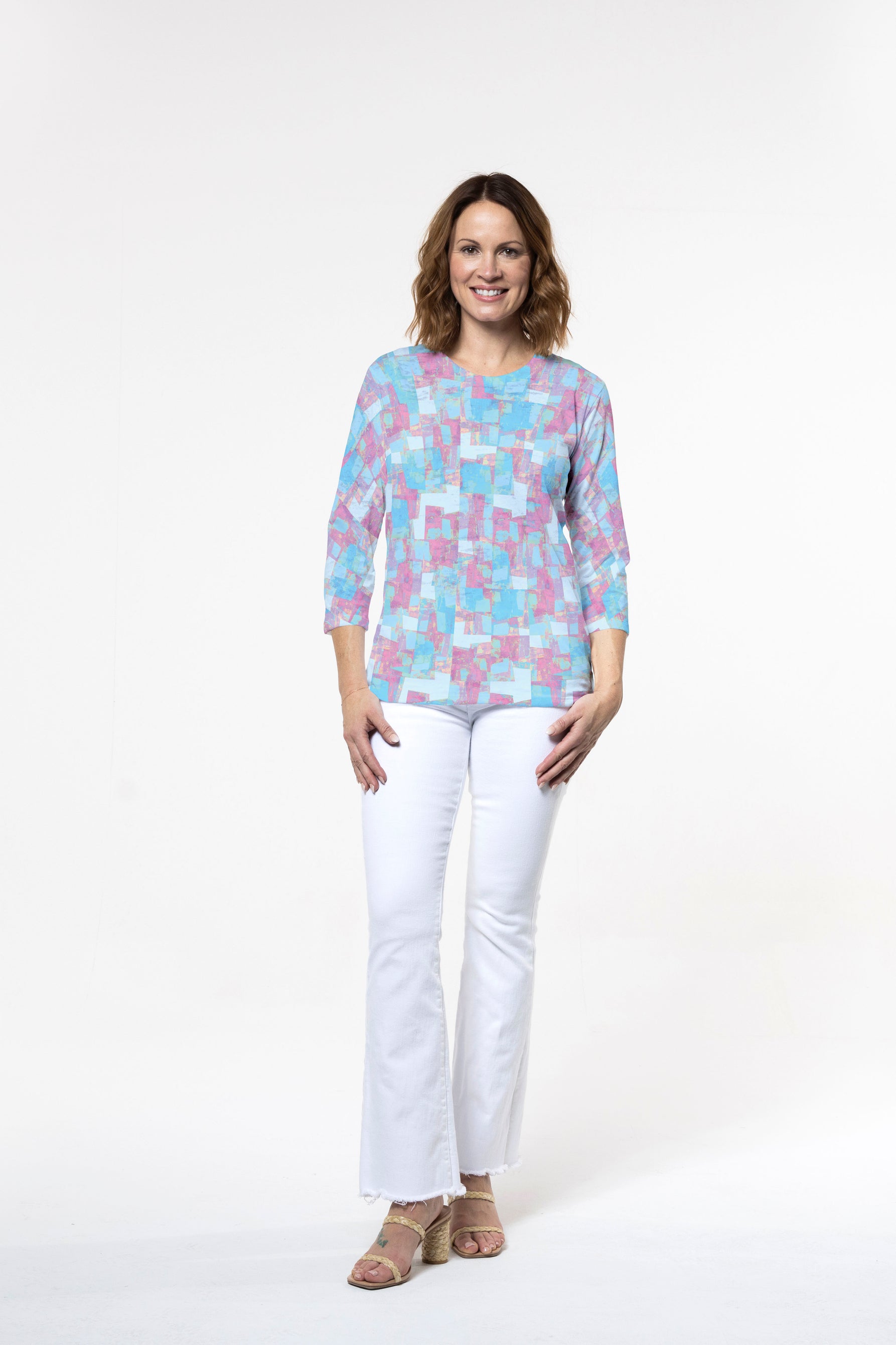 Aspen Aqua (19186) ~ Signature 3/4 Sleeve Crew Neck Top