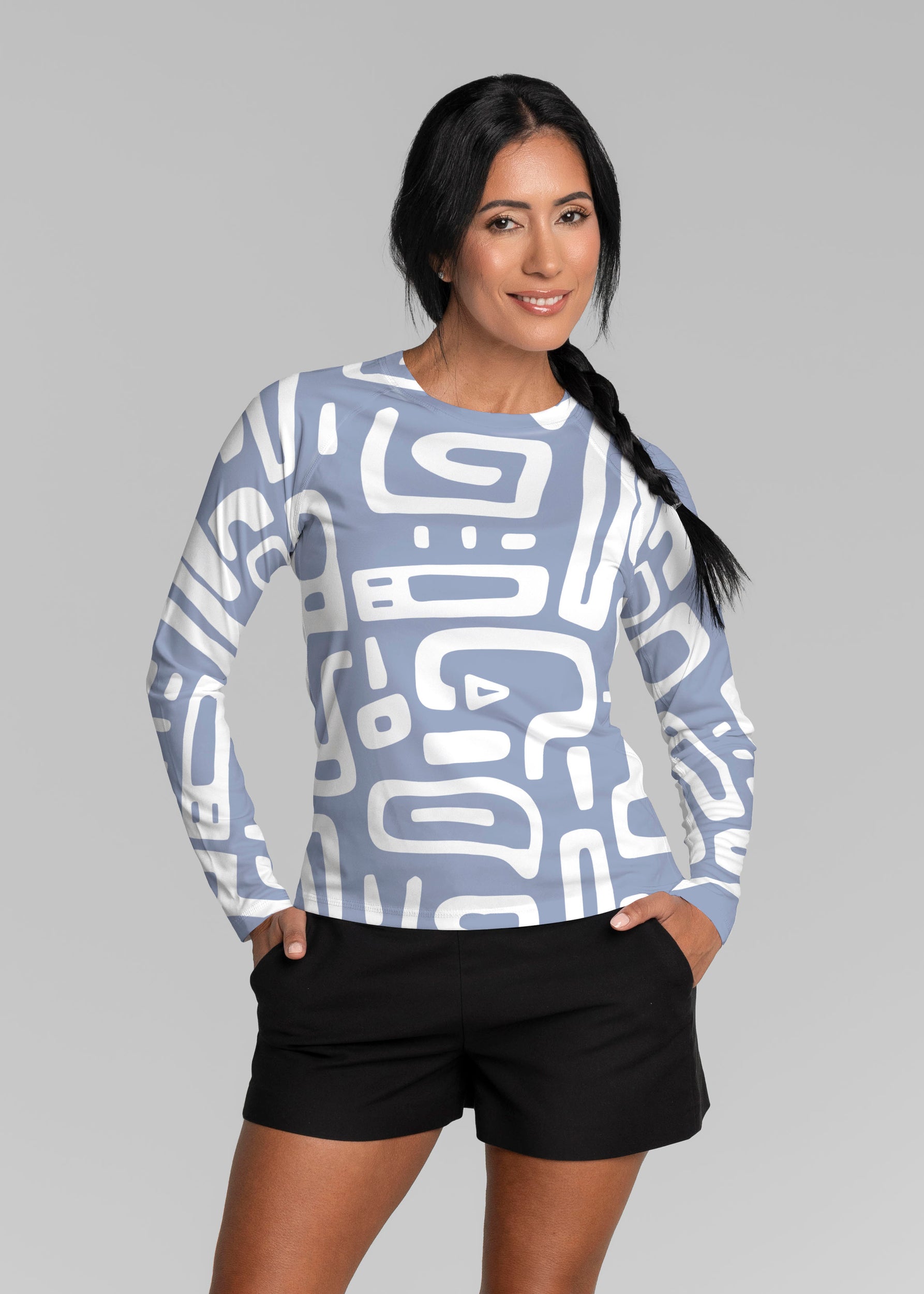 Gentle Geo Blue (26031) ~ Long Sleeve Rash Guard