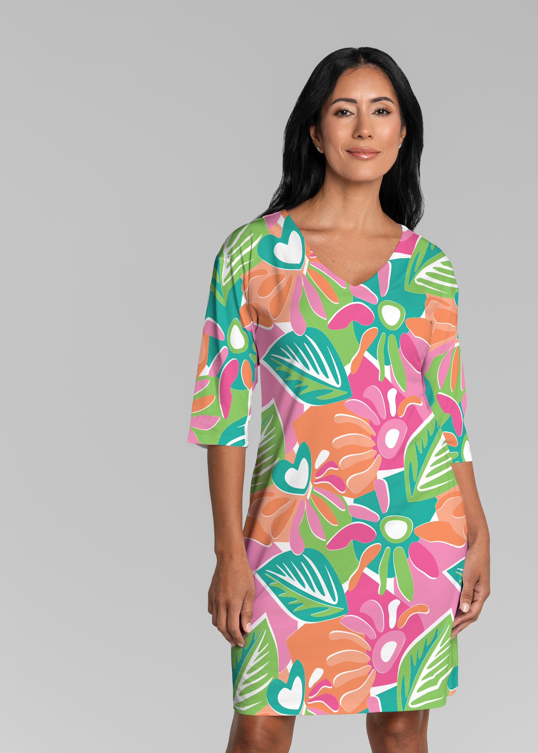 Hibiscus Island (19212) ~ Lucy 3/4 Sleeve V-Neck Dress