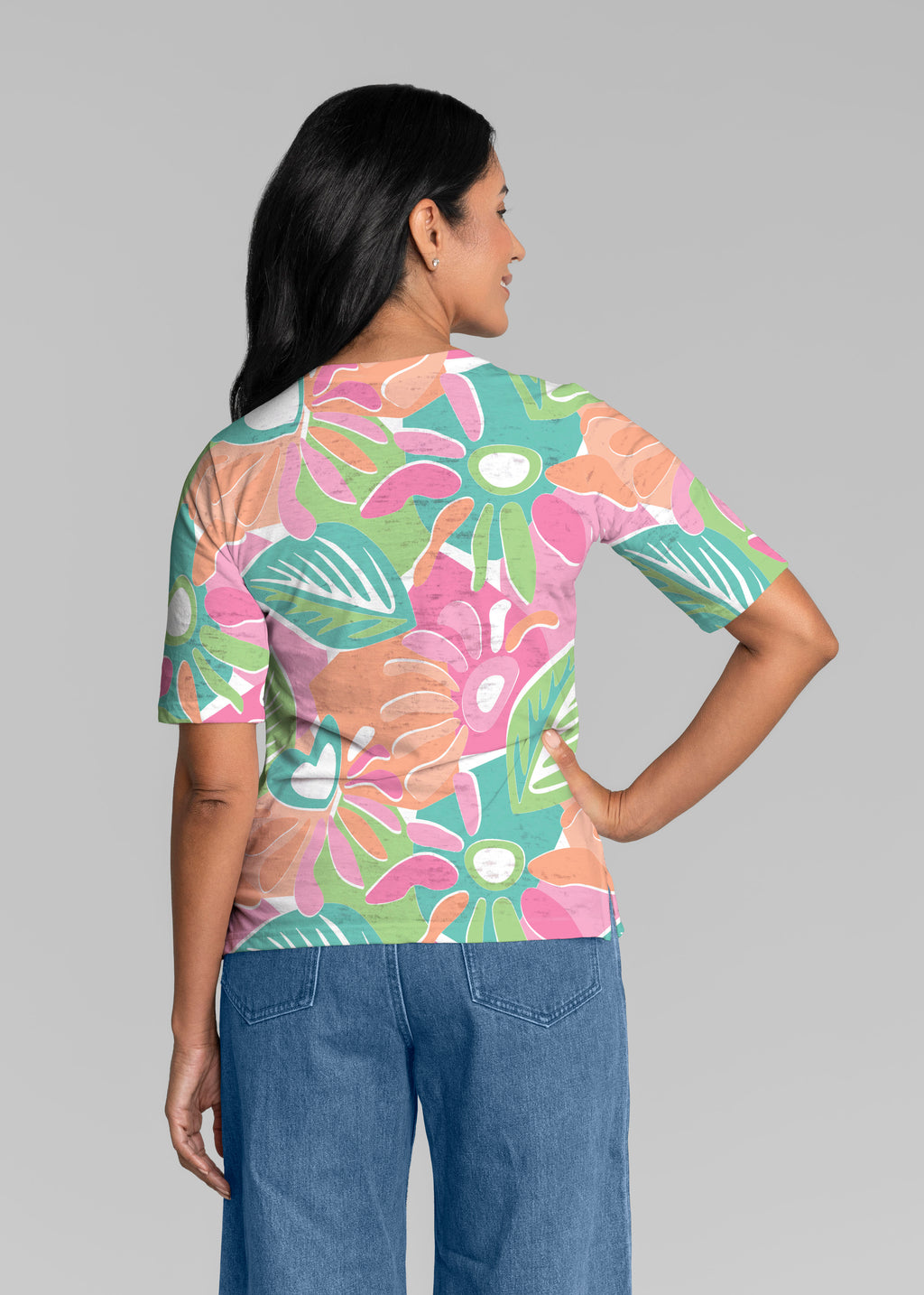 May Flowers (8027) ~ Signature Elbow Sleeve V-Neck Top