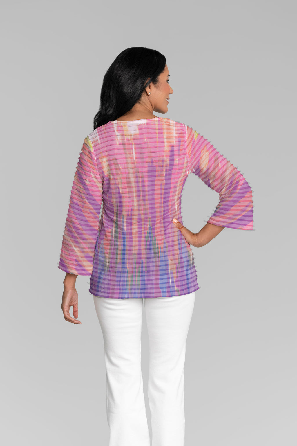 Monets Pallette (26009) ~ Banded 3/4 Bell-Sleeve V-Neck Tunic