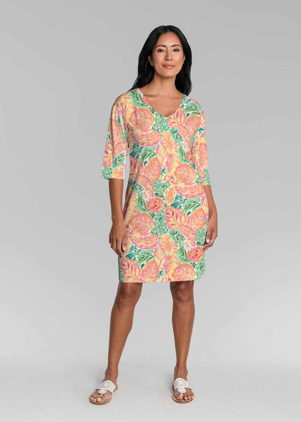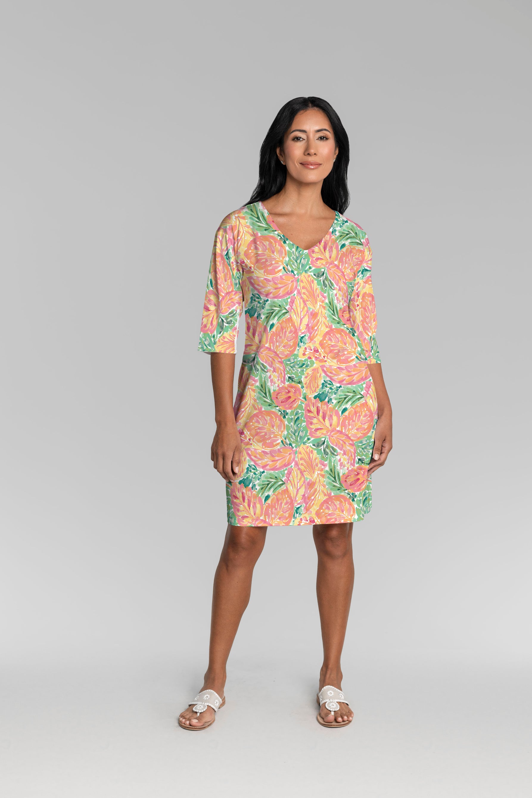 Hibiscus Island (19212) ~ Lucy 3/4 Sleeve V-Neck Dress