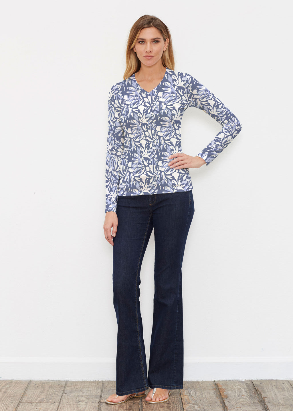 Jungle Warrior Blue (7850) ~ Butterknit Long Sleeve V-Neck Top