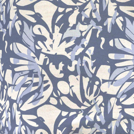 Camouflage pattern derived from interesting abstract shapes overlapping in shades of blues and white with a added pop of dots on the back. Designed by Susan Werner.