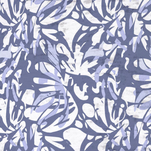 Camouflage pattern derived from interesting abstract shapes overlapping in shades of blues and white with a added pop of dots on the back. Designed by Susan Werner.