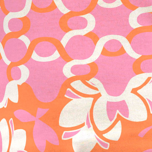 Cheerful bright orange, pink, white geometric print with contrasting front to back print with vivid florals designed by Alison Hoenes.