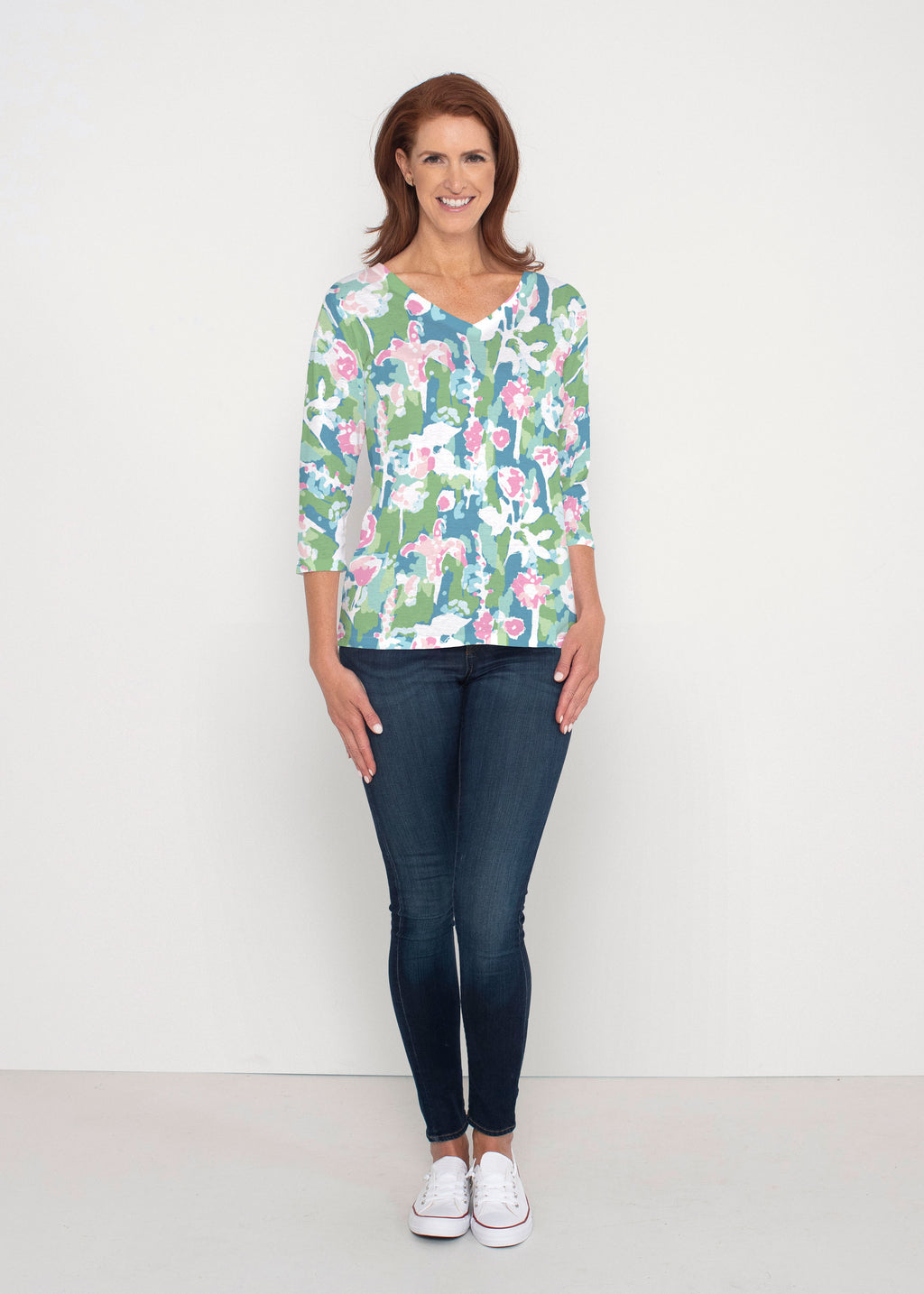 Our casual Signature 3/4 sleeve has a subtle v-neck and is perfectly proportioned and a new best-selling favorite. This relaxed fit is not only flattering but you get to pick that special print for any mood.