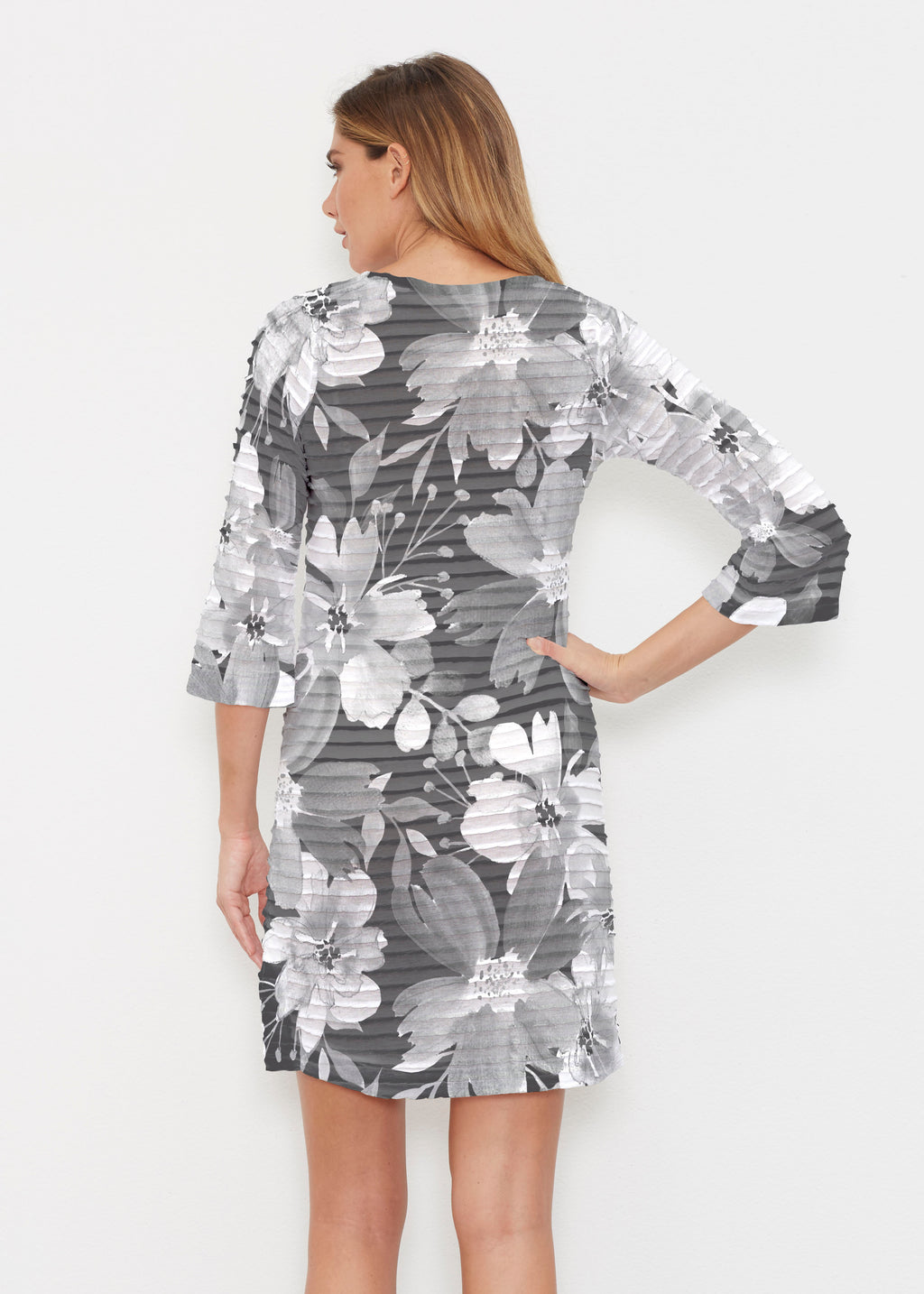Festive Bloom Black (8174) ~ Banded 3/4 Sleeve Dress